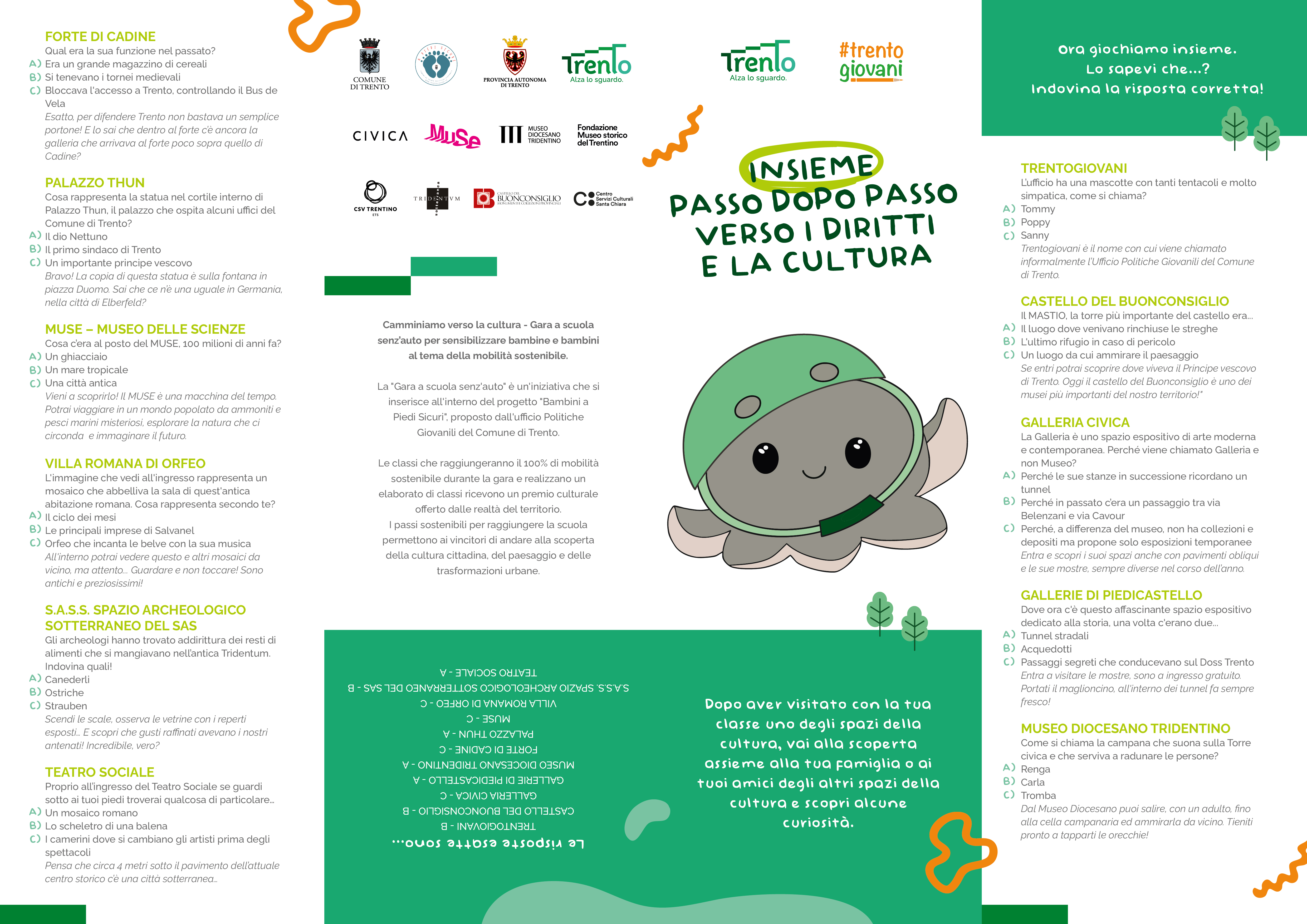 L'obiettivo è quello di raggiungere il 100% della mobilità sostenibile, le classi che raggiungeranno questo risultato otterranno un premio culturale, offerto dalle seguenti realtà del territorio: MUSE – Museo delle scienze, Castello del Buonconsiglio, monumenti e collezioni provinciali, Fondazione Museo Storico del Trentino, Museo Diocesano Tridentino, Centro Servizi Culturali Santa Chiara, Soprintendenza per i beni culturali – Provincia autonoma di Trento, MART, Azienda per il Turismo Trento, Monte Bondone.