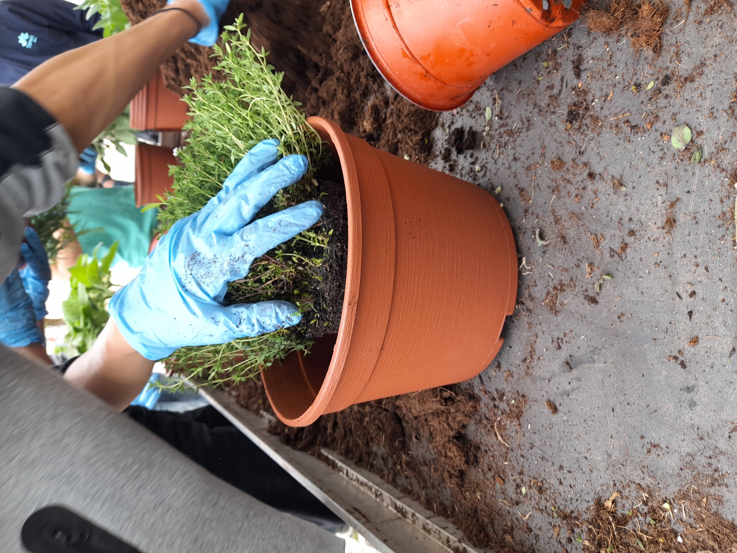Circa 25 alunnə accompagnati dallə docenti si sono rimboccatə le maniche cimentandosi in varie attività tra cui decorare con gessetti l’asfalto, trapiantare erbe aromatiche per costruire un orto, curare piccoli alberi che successivamente verranno piantati e dare ulteriore tocco artistico disegnando un cartello per identificare Pedrolli Land.